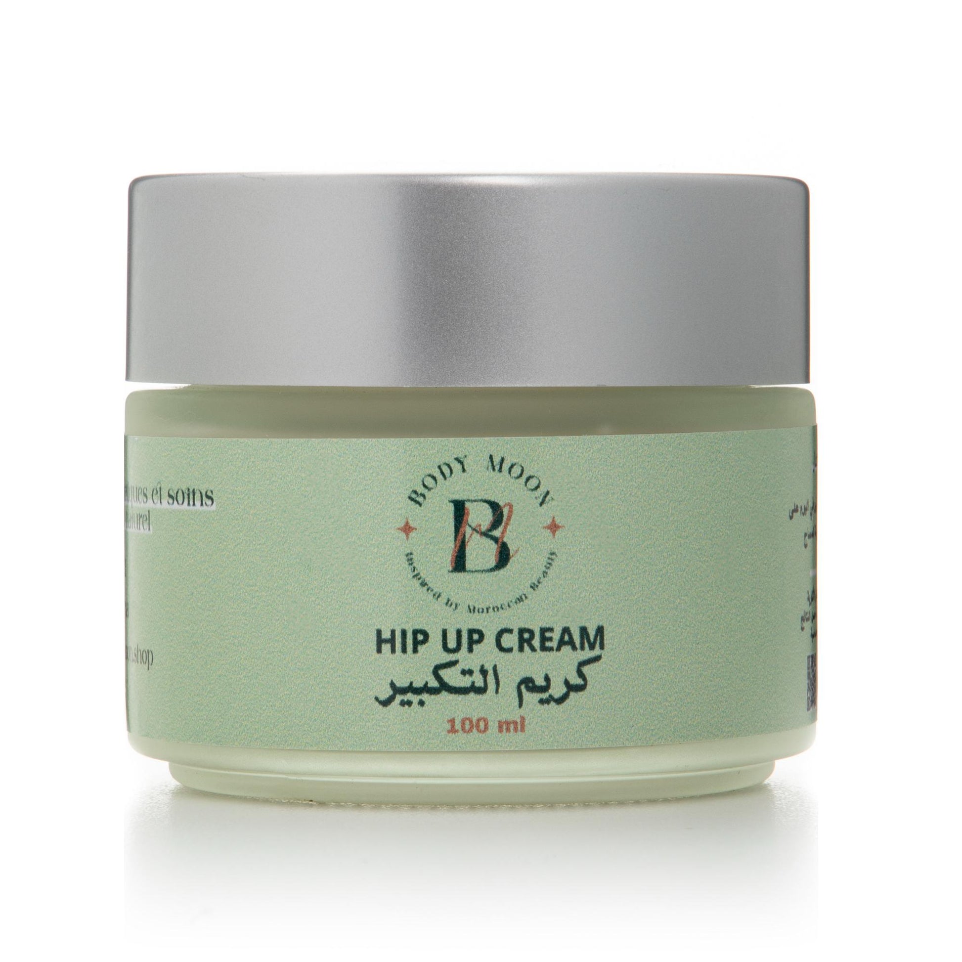 من أهم مكوناته زبدة الحلبة المغربية بكونها غنية بالفيتامينات A و B1 و B2 و B3 و B5 و D و الحديد و الفوسفور. تستعملها النساء خاصة لتكبير حجم الصدر و المؤخرة، أو أي منطقة أخرى في الجسم بشكل آمن لكونها طبيعية 100% ولا تحتوي على أي مواد مصنعة. و لكريم التكبير فوائد عناية و مغذية أخرى أيضا للبشرة.