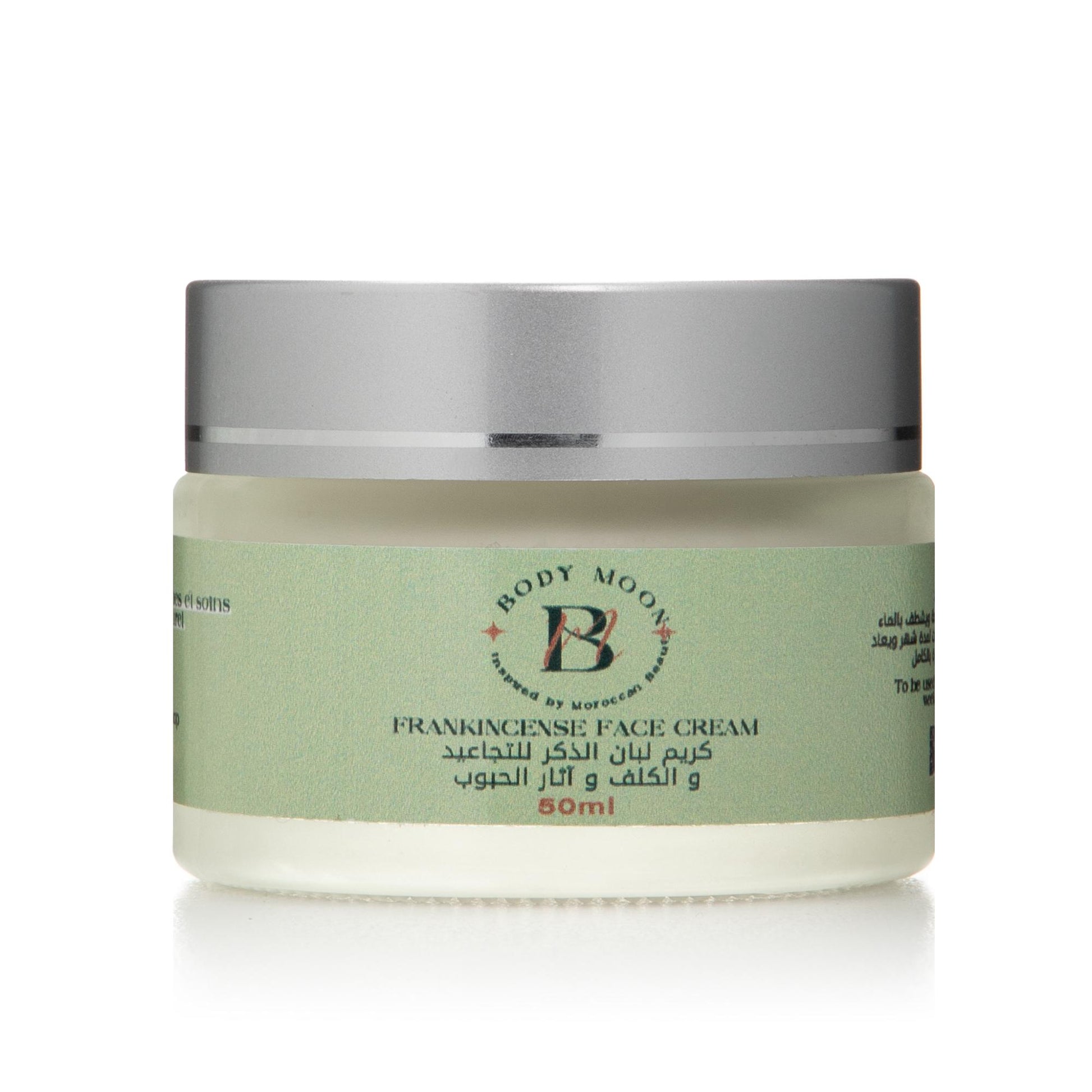 لبان الذكر مادة صمغية تُستخلص من قلب شجرة اللبان التي تنمو في بعض المناطق بقارة إفريقيا والخليج العربي، ويحتوي على عديد من الخواص العلاجية، تستخدم في مجال التجميل للوجه والشعر و الجسم يحتوي هذا الكريم على مادة الكولاجين الطبيعية والكثير من المواد الأخرى التي تساهم في تجديد خلايا البشرة وتفتيح لونها، وتخلص من تجاعيد البشرة ، كما يعيد إلى البشرة نضارتها ويساعد على شد المسام وتصغيرها.